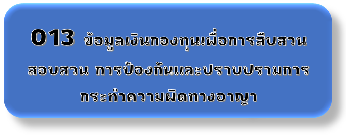 O13 ข้อมูลเงินกองทุนเพื่อการสืบสวน สอบสวน การป้องกันและปราบปรามการกระทําความผิดทางอาญา